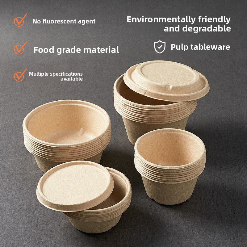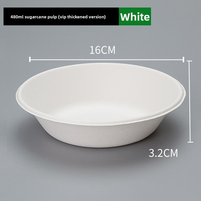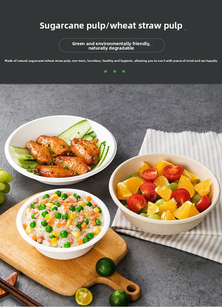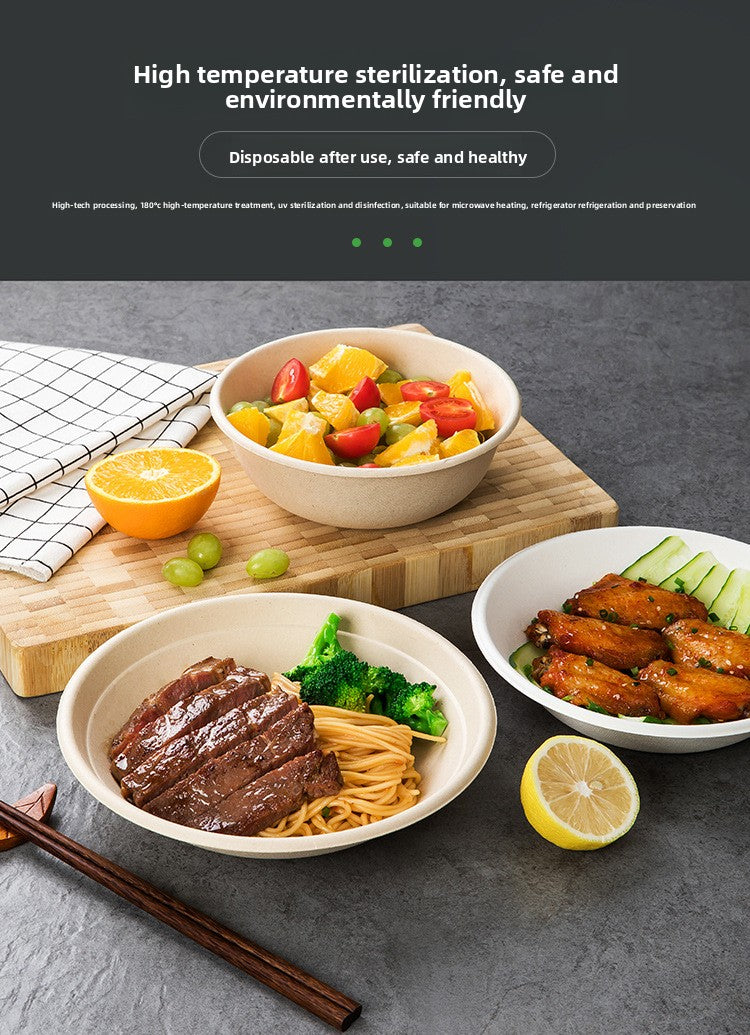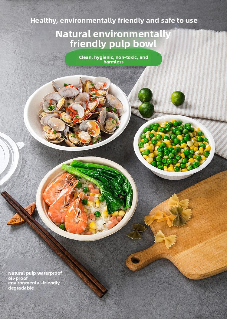 Disposable Paper Pulp Bowl Tableware Set Paper Bowl Commercial Household Bowl Biodegradable Whole Box Disposable Round Dinner Bowl