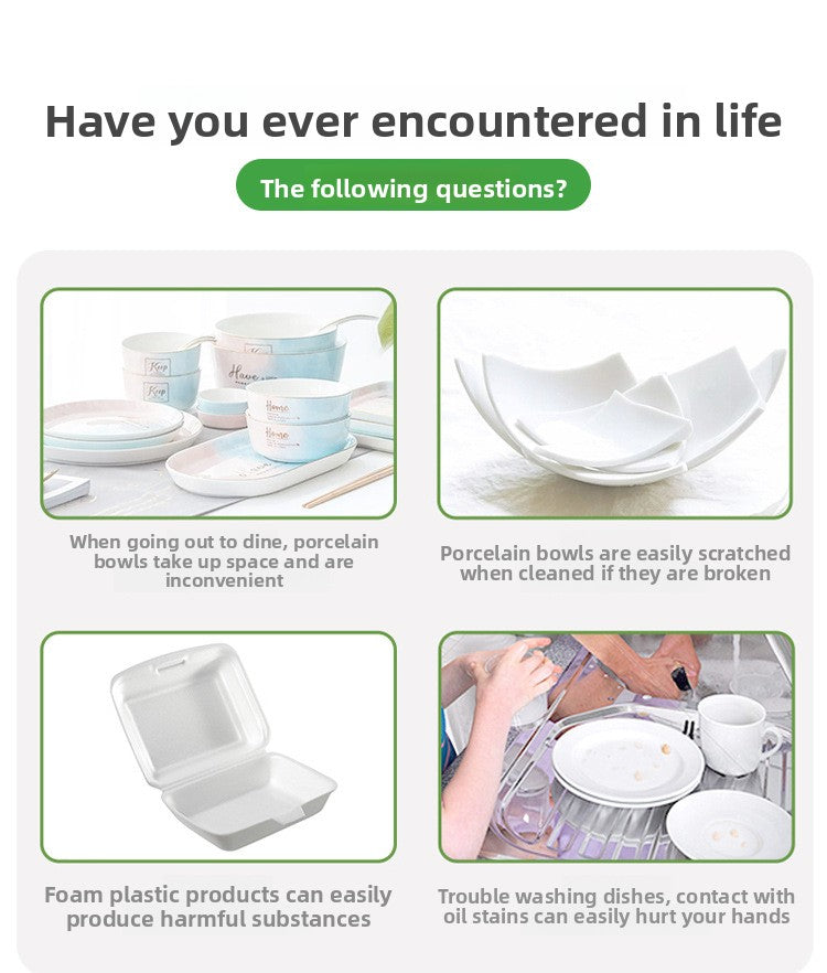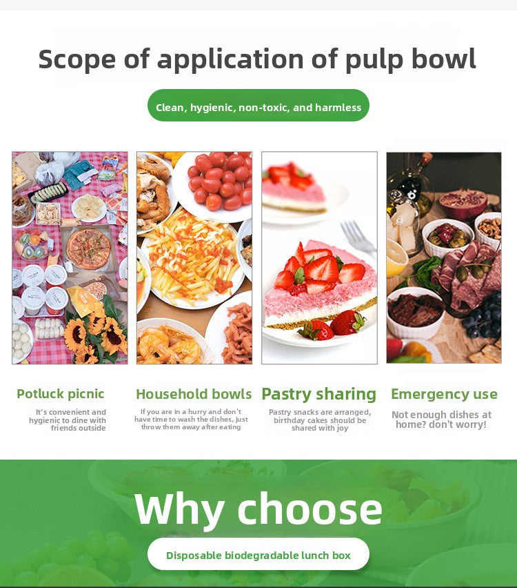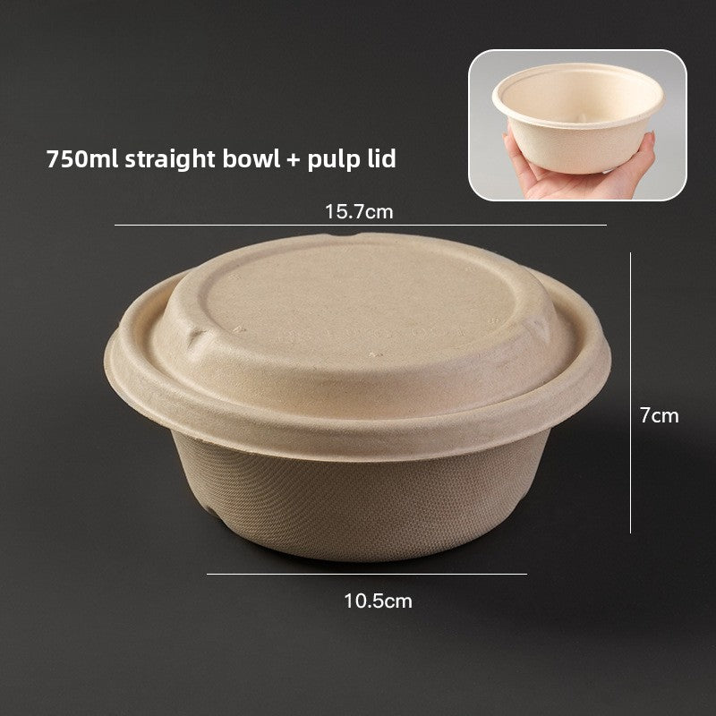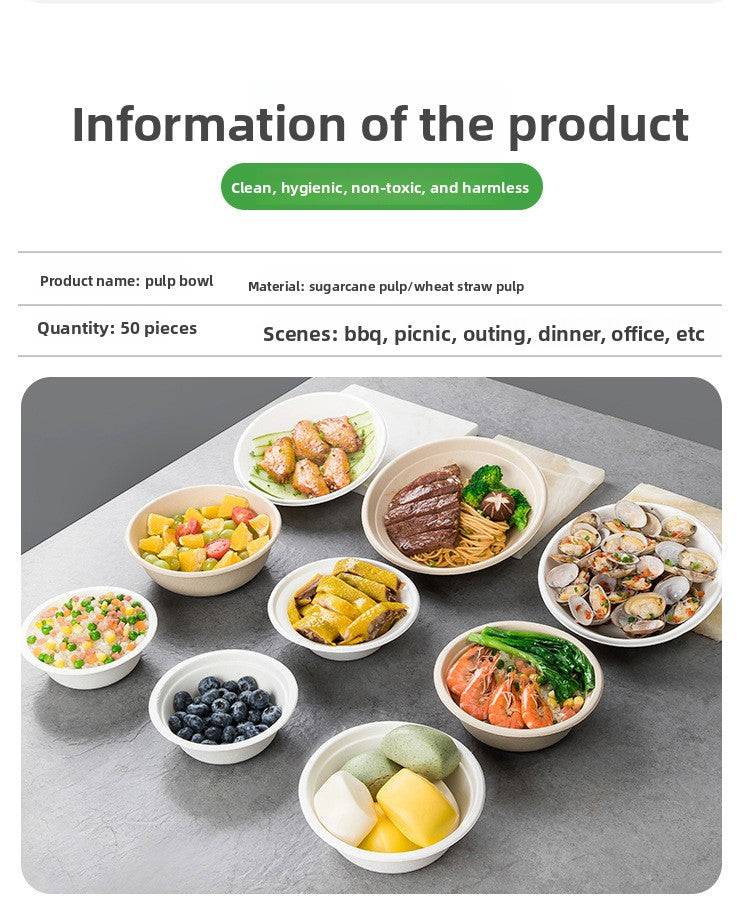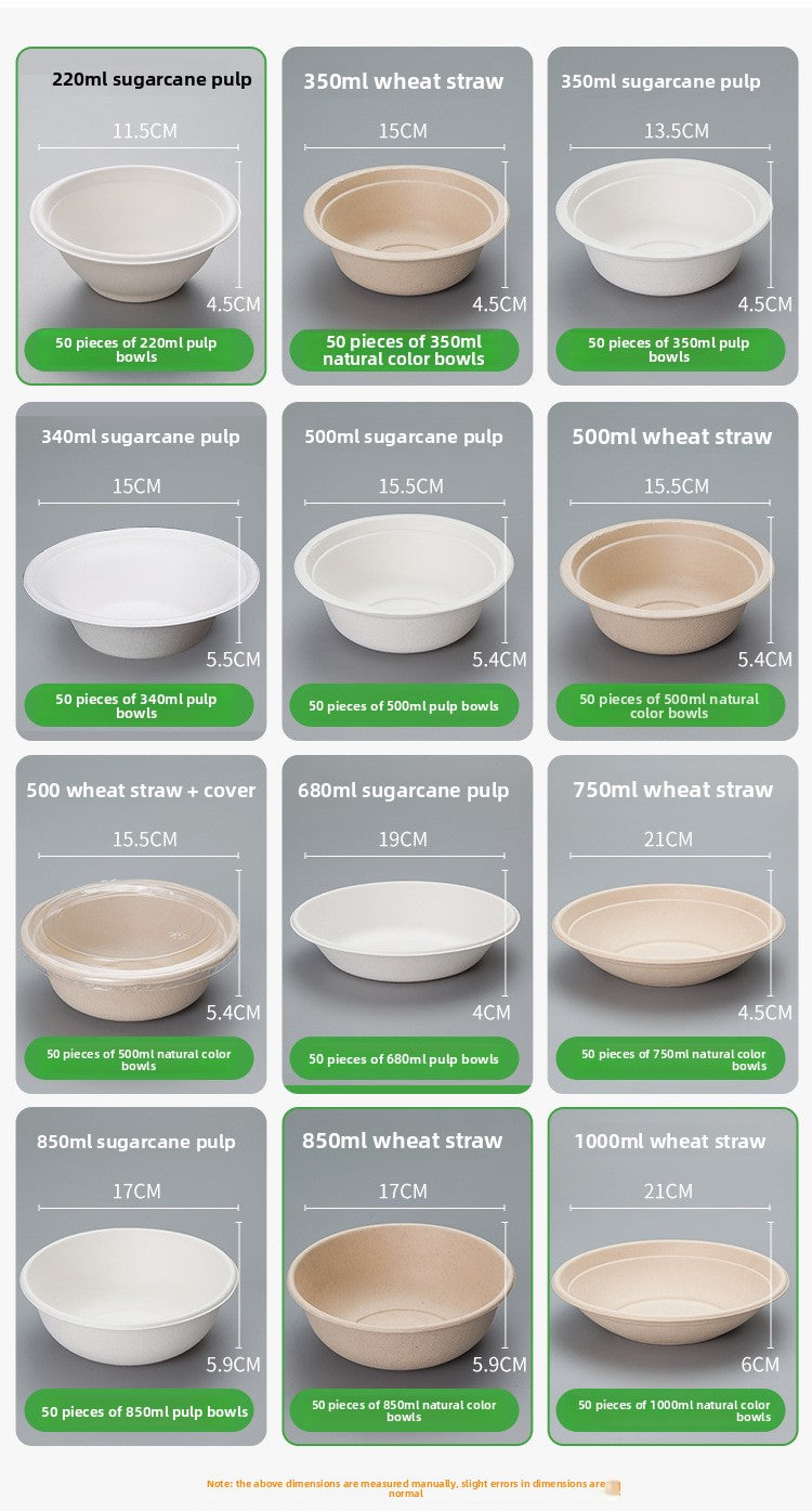Disposable Paper Pulp Bowl Tableware Set Paper Bowl Commercial Household Bowl Biodegradable Whole Box Disposable Round Dinner Bowl