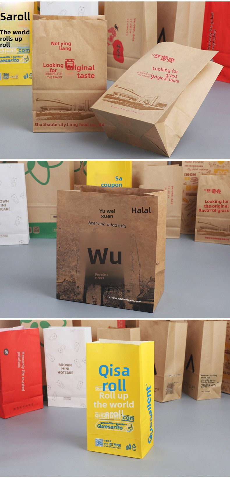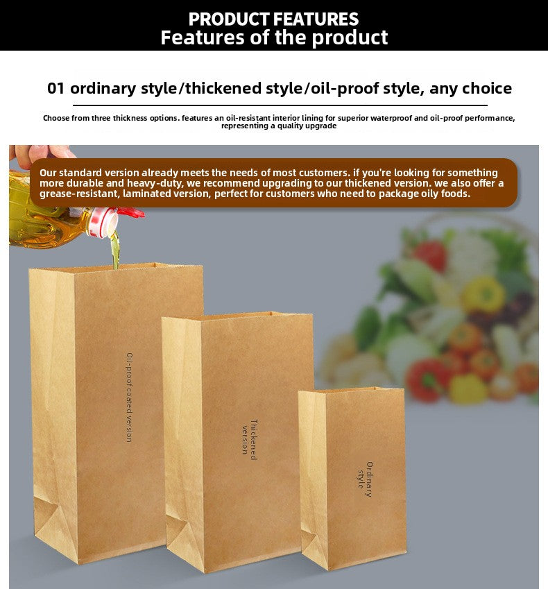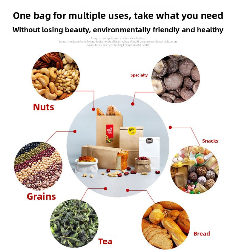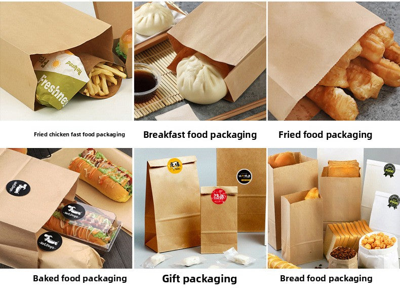 Universal Kraft Paper Bag Wholesale Refrigerator Storage Bread Food Packaging Bag Take out Take Away Oil-Proof Wrapping Paper Bag 100 Pcs